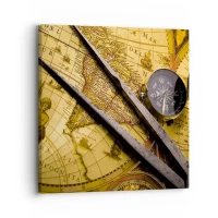 Orologio da parete - Orologio in Vetro - Una mappa del mondo antica con una bussola e un paio di bussole sullo sfondo - 30x30cm - Dove sono questi tesori? - Decorazione murale moderna per soggiorno e camera da letto ARTTOR