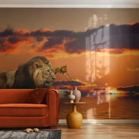 Fotomurale su misura Premium Sand - Il re della natura - Leone, Tramonto, Animali