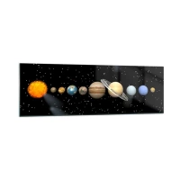 Quadro su vetro - Il sistema solare con i pianeti sullo sfondo delle stelle nello spazio - 160x50cm - E i pianeti folleggiano... - Decorazione murale moderna per soggiorno e camera da letto ARTTOR