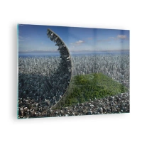 Quadro su vetro - Una città con uno spettacolare effetto di rifrazione spaziale - 70x50cm - La natura è eterna - Decorazione murale moderna per soggiorno e camera da letto ARTTOR