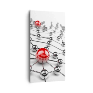 Fotomurali Premium Canvas - Una rete di palline metalliche con accenti rossi - 100x70cm - Rete argentea - Decorazione murale moderna per soggiorno e camera da letto ARTTOR