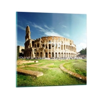 Orologio da parete - Orologio in Vetro - Il Colosseo a Roma sotto il sole - 30x30cm - Si sente ancora il rumore delle armi - Decorazione murale moderna per soggiorno, cucina e camera da letto ARTTOR