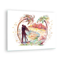 Quadro su vetro - Coppia romantica in un ambiente tropicale con palme - 70x50cm - Vacanze romantiche - Decorazione murale moderna per soggiorno e camera da letto ARTTOR