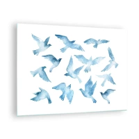 Quadro su vetro - Illustrazione di uccelli blu su sfondo bianco - 70x50cm - Uccelli del cielo - Decorazione murale moderna per soggiorno e camera da letto ARTTOR
