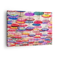 Quadro su tela - Stampe su Tela - Ombrelli colorati sospesi nell'aria - 70x50cm - Prato cittadino - Decorazione murale moderna per soggiorno e camera da letto ARTTOR