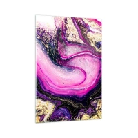 Quadro su vetro - Onde astratte nei toni del viola e dell'oro - 70x100cm - Un attimo dietro le quinte - Decorazione murale moderna per soggiorno e camera da letto ARTTOR