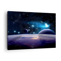 Quadro su tela - Stampe su Tela - Una vista dello spazio con pianeti e stelle - 70x50cm - Sempre da soli? - Decorazione murale moderna per soggiorno e camera da letto ARTTOR