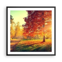 Quadro su tela - Stampe su Tela - Parco autunnale illuminato dalla luce del sole - 100x70cm - Rosso è bello - Decorazione murale moderna per soggiorno e camera da letto ARTTOR