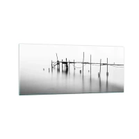 Quadro su vetro - Un molo bianco e nero immerso in un paesaggio nebbioso - 120x50cm - E se la luce non c'è? - Decorazione murale moderna per soggiorno e camera da letto ARTTOR