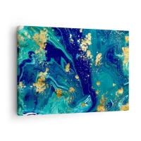 Quadro su tela - Stampe su Tela - Una composizione astratta con accenti blu, verdi e dorati. - 70x50cm - Petali di sole - Decorazione murale moderna per soggiorno e camera da letto ARTTOR