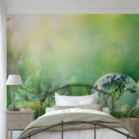 Fotomurali Standard Eco - Il globo di vetro della Terra in un paesaggio verde - 100x70cm - Pianeta verde - Decorazione murale moderna per soggiorno e camera da letto ARTTOR
