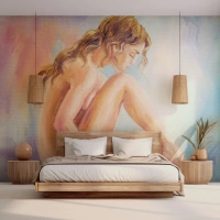 Fotomurali Standard Eco - Ritratto artistico di una donna in colori pastello - 100x70cm - Nudo di giovane - Decorazione murale moderna per soggiorno e camera da letto ARTTOR