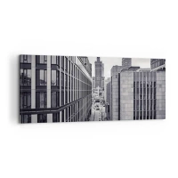 Quadro su vetro - Vista della città in bianco e nero con grattacieli e una strada - 120x80cm - La valle di Varsavia - Decorazione murale moderna per soggiorno e camera da letto ARTTOR