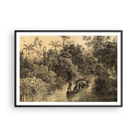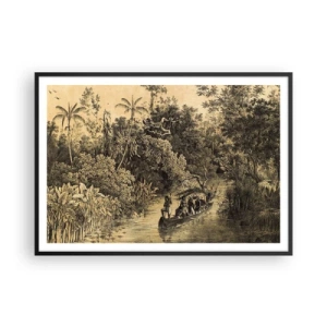 Poster in cornice nera - Disegno di una giungla con una barca su un fiume - 100x70cm - Viaggio alla fonte - Decorazione murale moderna per soggiorno e camera da letto ARTTOR
