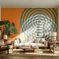 Fotomurali Standard Eco - Cerchi concentrici geometrici su sfondo arancione - 100x70cm - Composizione astratta a cerchi - Decorazione murale moderna per soggiorno e camera da letto ARTTOR