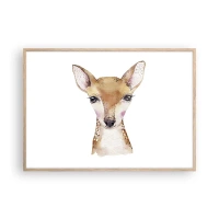 Quadro su tela - Stampe su Tela - Ritratto ad acquerello di un giovane capriolo su sfondo bianco - 70x100cm - La natura dell'innocenza - Decorazione murale moderna per soggiorno e camera da letto ARTTOR