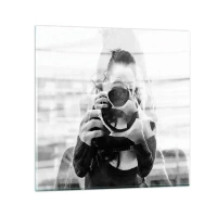 Quadro su vetro - Ritratto in bianco e nero con doppia esposizione di un fotografo - 70x100cm - Il creatore e il materiale - Decorazione murale moderna per soggiorno e camera da letto ARTTOR