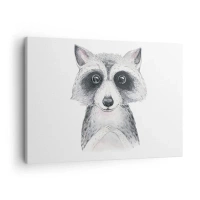 Quadro su tela - Stampe su Tela - Adorabile ritratto di un procione su sfondo bianco - 70x50cm - Un attimo di commozione - Decorazione murale moderna per soggiorno e camera da letto ARTTOR