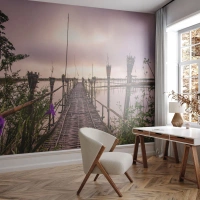 Fotomurali Premium Canvas - Ponte di bambù sull'acqua all'alba - 100x70cm - Pace e silenzio dell'Asia - Decorazione murale moderna per soggiorno e camera da letto ARTTOR