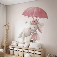 Fotomurali Standard Eco - Due simpatici coniglietti sotto un ombrello rosa - 100x70cm - Questo è proprio amore - Decorazione murale moderna per soggiorno e camera da letto ARTTOR