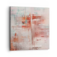 Quadro su tela - Stampe su Tela - Una composizione astratta con sfumature di rosso e colori pastello. - 50x70cm - Nebbiose e rosate - Decorazione murale moderna per soggiorno e camera da letto ARTTOR