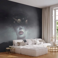 Fotomurali Premium Sand - E i pianeti folleggiano... - Astrazione, Volto di donna, Cosmo - 500x350 cm