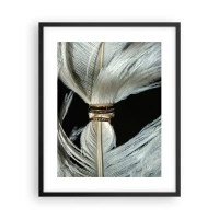 Quadro su vetro - Primo piano di fedi nuziali su piume bianche su sfondo nero - 120x80cm - ...e non ti lascerò... - Decorazione murale moderna per soggiorno e camera da letto ARTTOR