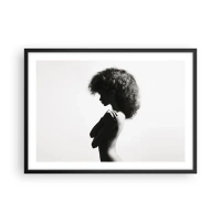 Poster in cornice nera - Una sottile silhouette di una donna in tonalità di bianco e nero su uno sfondo chiaro - 70x50cm - Come un fiore su un gambo snello - Decorazione murale moderna per soggiorno e camera da letto ARTTOR