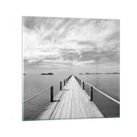 Quadro su vetro - Un molo di legno che si estende in lontananza sopra un mare calmo - 70x100cm - Forse un viaggio... - Decorazione murale moderna per soggiorno e camera da letto ARTTOR