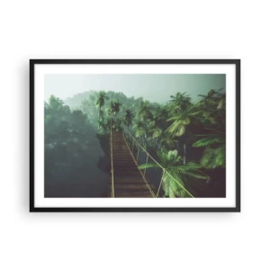Poster in cornice nera - Un ponte sospeso in una foresta tropicale circondato dalla nebbia. - 70x50cm - Nel vortice del verde - Decorazione murale moderna per soggiorno e camera da letto ARTTOR