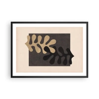 Poster in cornice nera - Foglie astratte in nero e beige su uno sfondo rettangolare - 70x50cm - Assenza e completamento - Decorazione murale moderna per soggiorno e camera da letto ARTTOR