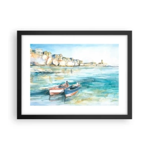 Poster in cornice nera - Un pittoresco paesaggio costiero con barche sull'acqua - 100x70cm - Paesaggio in azzurro - Decorazione murale moderna per soggiorno e camera da letto ARTTOR