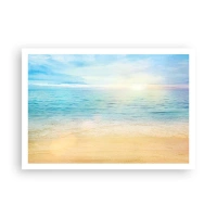 Poster - Una spiaggia con mare turchese e cielo limpido - 100x70cm - Il grande blu - Decorazione murale moderna per soggiorno e camera da letto ARTTOR