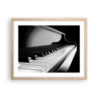 Poster in cornice nera - Tasti del pianoforte in un'elegante ripresa in bianco e nero - 100x70cm - Armonia di forme e colori - Decorazione murale moderna per soggiorno e camera da letto ARTTOR