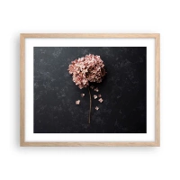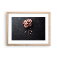 Poster in cornice nera - Un delicato fiore di ortensia su uno sfondo scuro - 100x70cm - Un vero segno romantico - Decorazione murale moderna per soggiorno e camera da letto ARTTOR