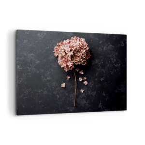 Quadro su vetro - Ortensia secca con petali sparsi su sfondo scuro - 100x70cm - Un vero segno romantico - Decorazione murale moderna per soggiorno e camera da letto ARTTOR