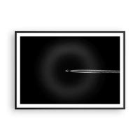 Poster in cornice nera - Un aereo a reazione con una scia di condensazione visibile su uno sfondo nero - 100x70cm - In un'altra dimensione - Decorazione murale moderna per soggiorno e camera da letto ARTTOR