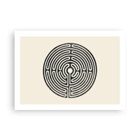 Poster - Labirinto circolare bianco e nero su sfondo chiaro - 100x70cm - Ordine misterioso - Decorazione murale moderna per soggiorno e camera da letto ARTTOR
