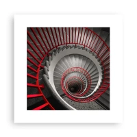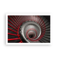 Poster - Scala a chiocciola con corrimano rossi in prospettiva dinamica - 100x70cm - I giochi dell'architettura - Decorazione murale moderna per soggiorno e camera da letto ARTTOR