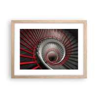 Poster in cornice nera - Scala a chiocciola con corrimano rossi in prospettiva dinamica - 100x70cm - I giochi dell'architettura - Decorazione murale moderna per soggiorno e camera da letto ARTTOR