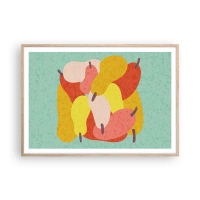 Poster in cornice nera - Pere astratte colorate su sfondo verde - 100x70cm - Assaggia il sole estivo - Decorazione murale moderna per soggiorno e camera da letto ARTTOR