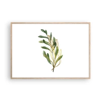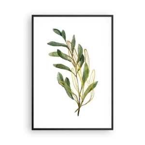 Poster in cornice nera - Ramo verde con foglie su sfondo bianco - 100x70cm - Tutto ciò che è buono - Decorazione murale moderna per soggiorno e camera da letto ARTTOR