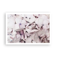 Poster - Delicate ortensie bianche in tonalità pastello - 100x70cm - Un'alluvione di fiori - Decorazione murale moderna per soggiorno e camera da letto ARTTOR