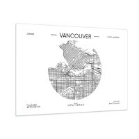 Quadro su vetro - Mappa stradale in bianco e nero di Vancouver - 100x70cm - Anatomia Vancouver - Decorazione murale moderna per soggiorno e camera da letto ARTTOR
