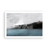Poster - Paesaggio astratto con acqua e una costa rocciosa - 100x70cm - Acqua-terra: lo scontro degli elementi - Decorazione murale moderna per soggiorno e camera da letto ARTTOR