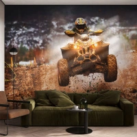 Fotomurali Premium Sand - Salto dinamico in quad fuoristrada - 100x70cm - No risk no fun - Decorazione murale moderna per soggiorno e camera da letto ARTTOR