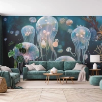 Fotomurali Autoadesivo Deluxe Sticker - Danza sottomarina - Medusa, Animali, Profondità - 350x256 cm