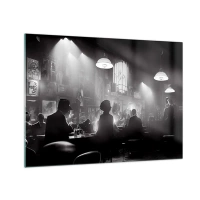 Quadro su vetro - Palco jazz in bianco e nero all'interno di un club - 70x50cm - Nell'atmosfera jazz - Decorazione murale moderna per soggiorno e camera da letto ARTTOR