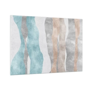 Quadro su vetro - Delicate strisce nei toni del beige e del blu - 100x70cm - Studio di prossimità - Decorazione murale moderna per soggiorno e camera da letto ARTTOR