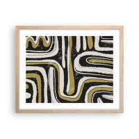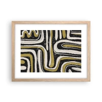 Poster in cornice nera - Motivo astratto in nero, bianco e oro - 100x70cm - Composizione: strade e vicoli - Decorazione murale moderna per soggiorno e camera da letto ARTTOR